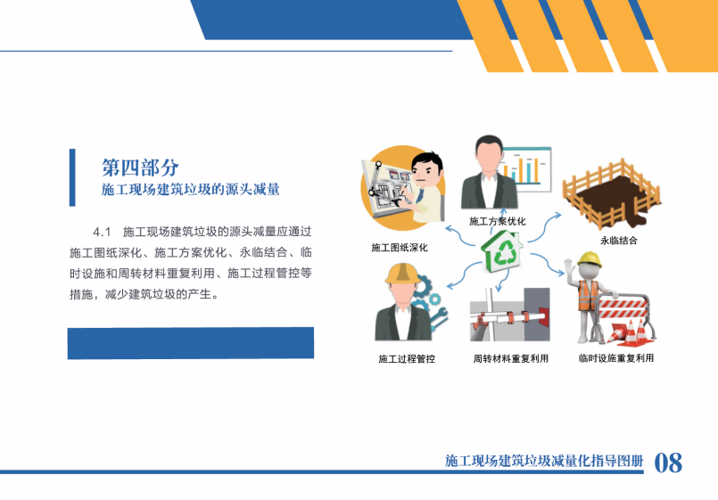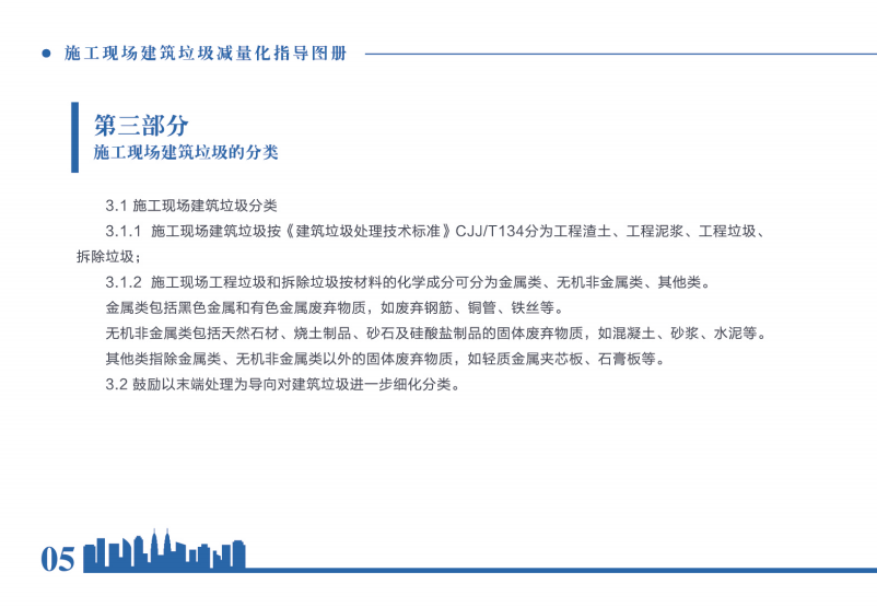 为贯彻落实《住房和城乡建设部关于推进建筑垃圾减量化的指导意见》,住房和城乡建设部组织编制了《施工现场建筑垃圾减量化指导图册》。
