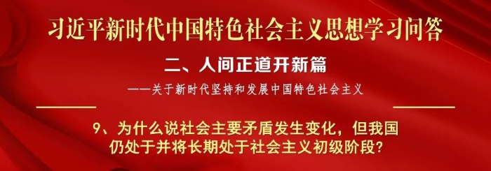 建设社会主义是一次伟大的长征,走过社会主义初级阶段至少需要上百年时间。在这个进程中,社会主要矛盾不是一成不变的。长期以来,人民日益增长的物质文化需要同落后的社会生产之间的矛盾是我国社会主要矛盾。随着中国特色社会主义进入新时代,我国社会主要矛盾已经转化为人民日益增长的美好生活需要和不平衡不充分的发展之间的矛盾。