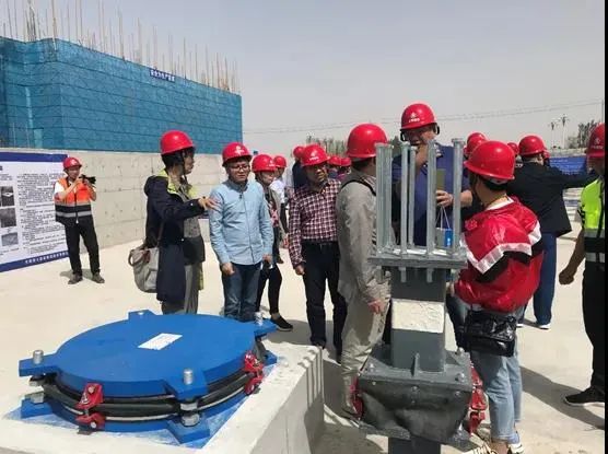 5月12日下午,会议专家学者和参会代表共计100余人前往附近的玉门市玉门志远学校进行隔震工程及产品现场观摩。该项目总建筑面积约12万平米,其中11栋楼近10万平米采用了由标准院自主研发的目前最先进的隔震技术产品——超低摩擦系数摩擦摆隔震支座,为目前国内应用规模最大的摩擦摆支座隔震项目。