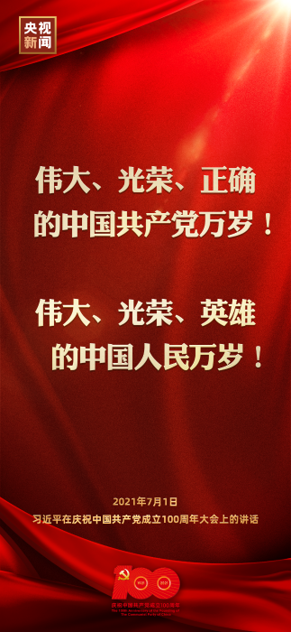 7月1日,庆祝中国共产党成立100周年大会在北京天安门广场隆重举行,中共中央总书记、国家主席、中央军委主席习近平发表重要讲话。