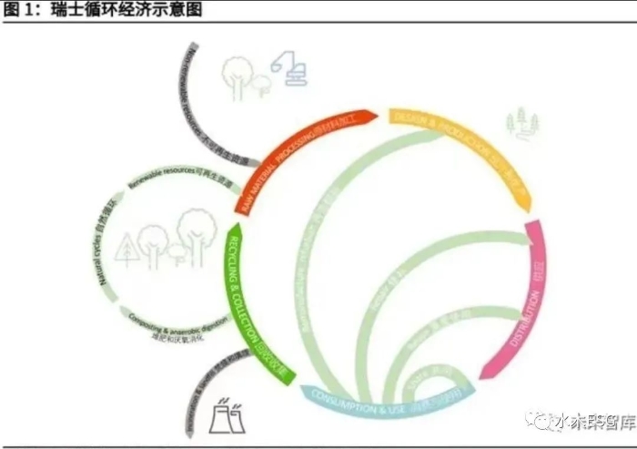 在瑞士、德国等发达国家,循环经济得到高度重视。根据清华 PPP 研究中心引 自瑞士联邦环保部网站的有关数据,2018 年在瑞士产生的一千七百五十万吨建筑垃圾中,有近一千二百万吨(水泥、碎石、沥青等)被回收再利用,城市垃圾中,一半以上被循环利用;在德国饮料瓶、废纸也可通过专门的渠道统一进行回收。在循环经济的框架下,产品的使用年限得到提升,这不仅保护了环境、节约了资源,大部分情况下还能为消费者节省费用,同时为资源再利用企业提供新的商机。