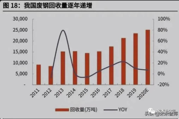 碳达峰、碳中和提出后,电炉(如果使用清洁能源)具有一定的减排效果,路线 低碳化转变的过程中,会提升废钢的需求。