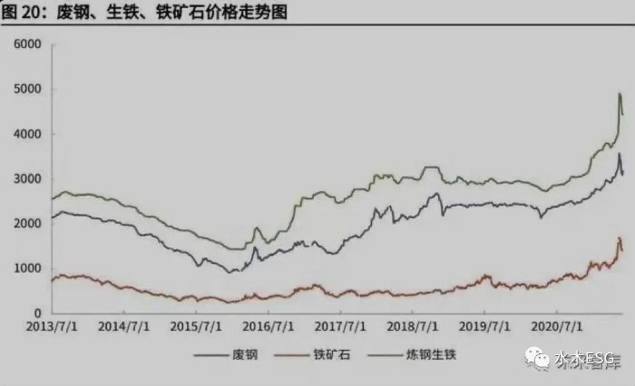 (3)在供给侧:2015 年的中央经济工作会议上,中央提出“三去一补一降”(去 产能、去库存、去杠杆、降成本、补短板)五大任务,从 2016 年起,对钢铁行 业整体进行了供给侧改革,拉动钢价上涨,原材料价格也水涨船高。