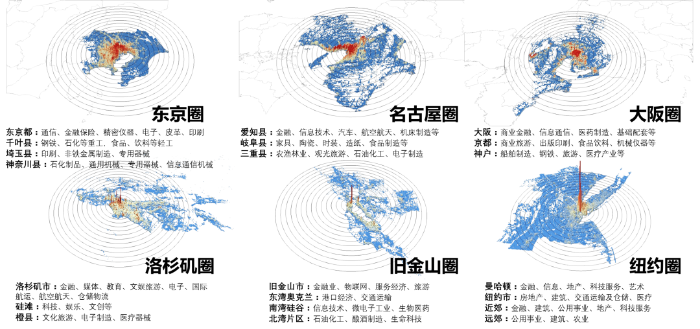 图4 日本、美国主要都市圈人口分布及主要产业情况(150公里圈)