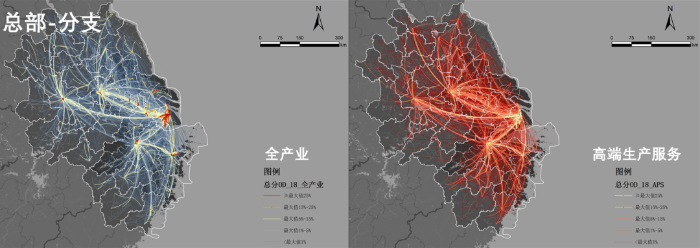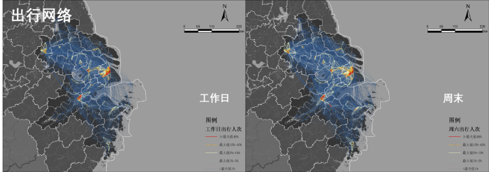 图7 长三角区域产业经济联系和人员出行网络分析