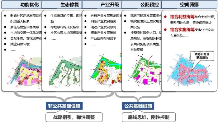 片区统筹规划对各更新项目的实施时序、实施方式进行统筹安排,梳理前期运作进度、推进难题,引导各主体按时间节点推进前期工作,保证各更新项目有序实施。通过编制统筹时间与空间两个维度的实施方案,统筹公共用地移交与项目开发建设时序。