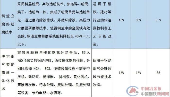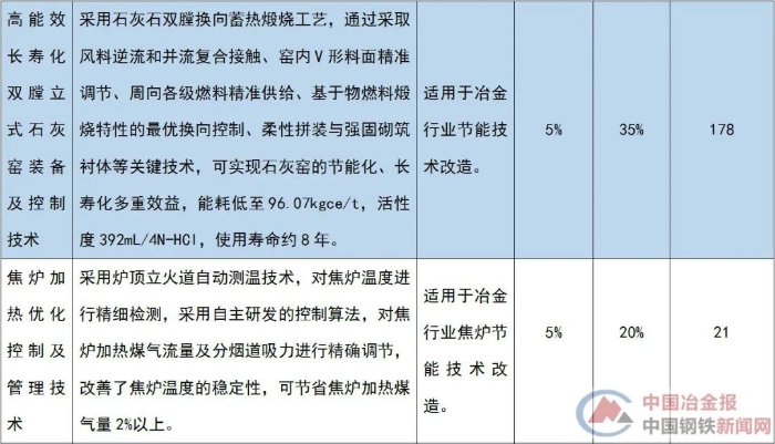 与钢铁行业相关的节能技术装备目录