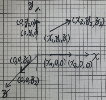 式中K与M为矩阵形式,它的物理意义可以用三维空间坐标系来类比说明,如下图: