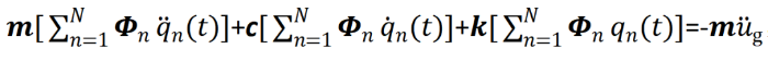 式中地震振动已经写成等效惯性力的形式,将位移按振型分解,