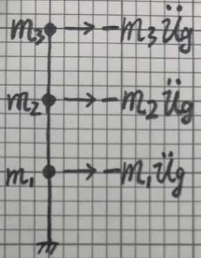 我们还可以直接将振动与外力都分解到各振型上直接计算,位移分解方法前面已经得到,现在推导外力的分解方法。地震力的分布我们已经知道,如下图所示:
