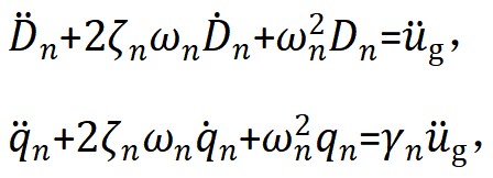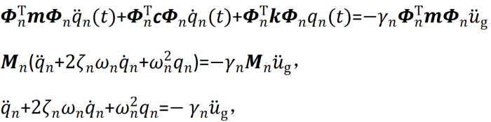 可求出第n振型对位移的贡献。至此我们就由单自由度的位移结果求出了各振型的位移结果,然后在任一时刻将各振型的结果简单叠加就可以得到每个质点的位移,再进行一阶与二阶求导就可以求各质点的速度与加速度。