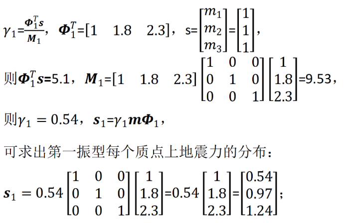我们首先求出第一振型的地震力分布: