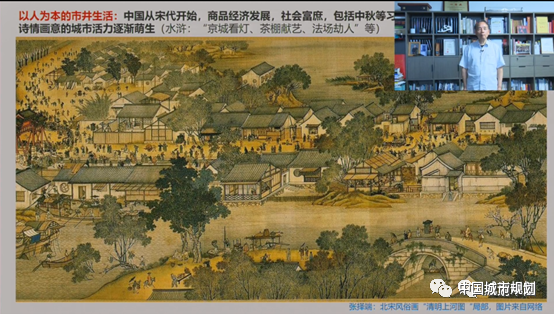 中国“以人为本”的市井生活大致从宋代开始,商品经济发展,社会富庶,包括中秋等习俗也是在这一时期兴盛,诗情画意的城市活力逐渐萌生,如古典小说中描绘的京城看灯、茶棚献艺、法场劫人等。