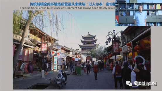 传统城镇空间环境场所营造从来就与“以人为本”密切相关。下图为大理古城十字街场景。