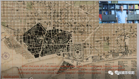 由于现代城市功能发展变化,现代城市规划和治理中就有了尺度和规模变大的过程。上图是80年代由塞尔达做的巴塞罗那城市规划,可以看到是在过去历史城区的基础上,延展出以格网为主构成的新城市布局,格网尺度大约是100-110米见方。这一规划极具远见,今天的巴塞罗那基本上就是由这样的城区构成。