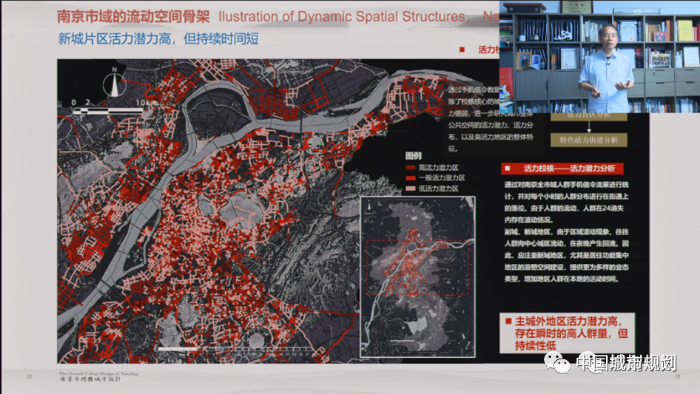 这是我们做的南京总体城市设计,研究南京老城、江北新区、河西、南部新城、大学城之间的人群关系,从而可以从更深层面捕捉到城市中人和空间形态之间的关系,只有这样“以人为本”才能真正做到有依据、有科学支撑。