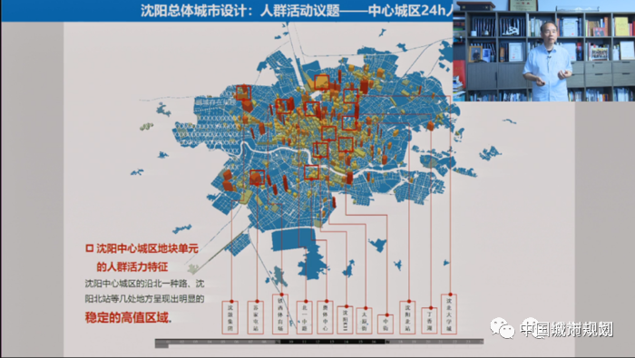 这是最近刚刚完成的沈阳总体城市设计。通过中心城区24小时时间信令数据的追踪,可以找到其中明显的稳定区域,这为下一步的城市设计的重点设定,包括空间设计对策研究提供了很好的依据。此外,这一总体城市设计是和沈阳市国土空间规划同步编制,这样就与更宏观的决策以及管理联系起来了。