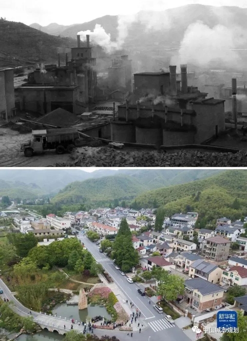 30多年前,依靠优质的石灰岩资源,“采石经济”红红火火,可环境却遭了殃,植被破坏、灰尘漫天、溪水浑浊。痛定思痛,余村人决定关停水泥厂和石灰矿,求还绿水青山。