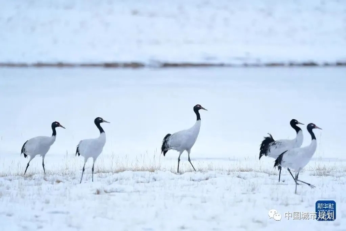 2021年10月21日在三江源国家公园黄河源园区内拍摄的黑颈鹤。新华社记者 张龙 摄