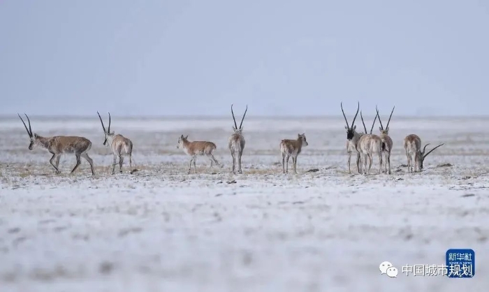 2021年4月20日,藏羚羊在三江源可可西里地区活动。新华社记者 吴刚 摄