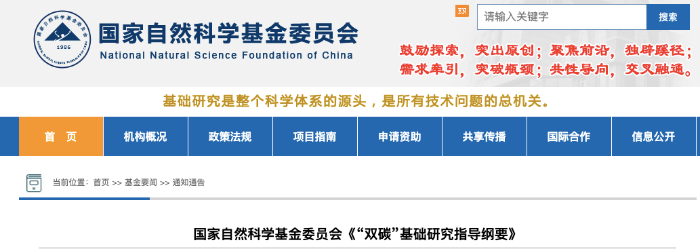 《“双碳”基础研究指导纲要》是国家自然科学基金委员会组织相关领域专家进行广泛调研、深入研讨完成的,旨在统筹全委前期和未来的资助布局,引导各科学部深入凝练关键科学问题,科学遴选优先资助方向,着力促进多学科交叉和研究范式变革,为今后的项目资助提供方向性指导。该指导纲要也可能会随着环境目标的推进和技术路径的发展有所变化和调整。